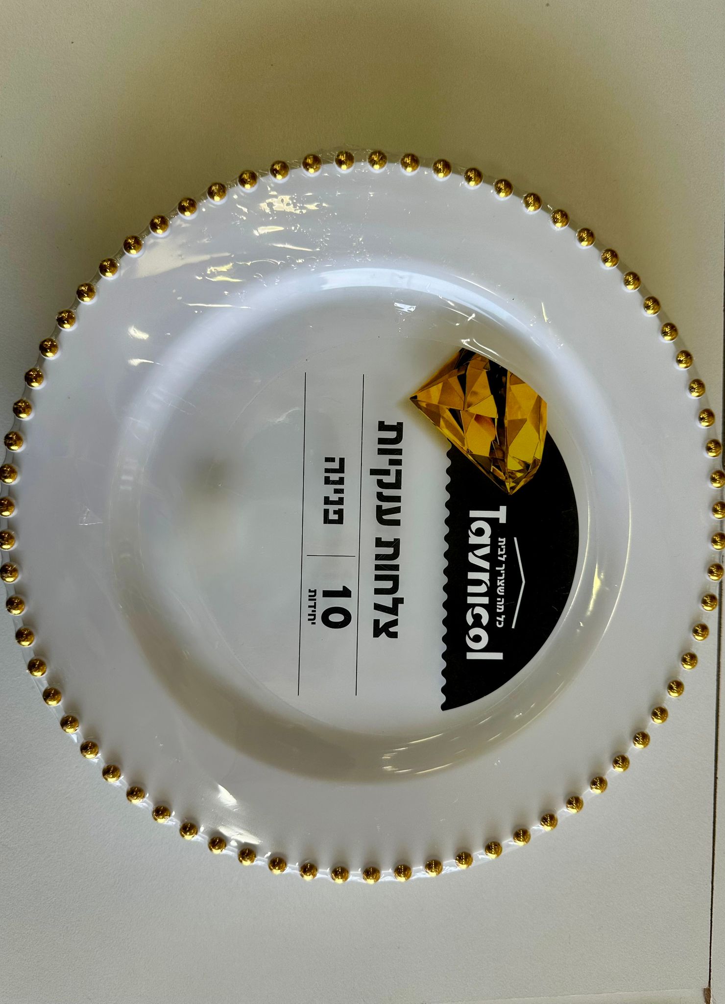 צלחות ענקיות 10" דגם פנינה- צבע לבן עם פנינים זהב- 10 יחידות quantity