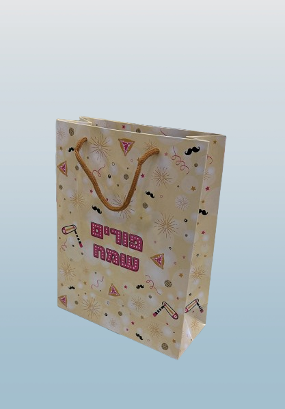 שקית פורים שמח ורוד צהוב 19x8x24.5 ס״מ