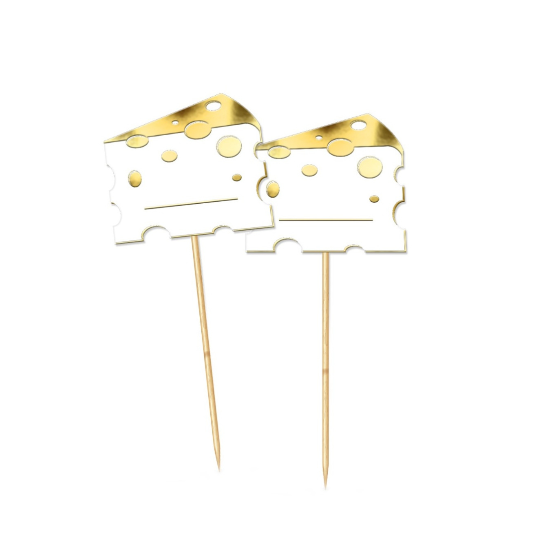 6 קיסמים לשבועות בצורת גבינה עם תגית שם quantity